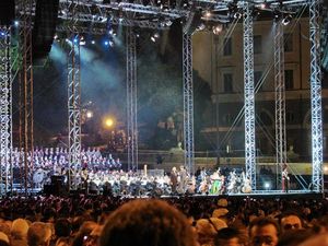 Среди участников концерта стоит отметить огромный рок-оркестр, руководителем которого, является знаменитый музыкальный продюсер и композитор Витторио Косма. В состав рок-оркестра войдут лидеры известных музыкальных коллективов. Прозвучат композиции, ставшие не только итальянским но и всемирным достоянием − мелодии Адриано Челентано, Лучио Баттисти, Франческо Де Грегори, можно будет услышать переработанные в стиле рок. Торжественную часть концерта откроет ансамбль из 100 виолончелистов, которые исполнят гимн Италии.
